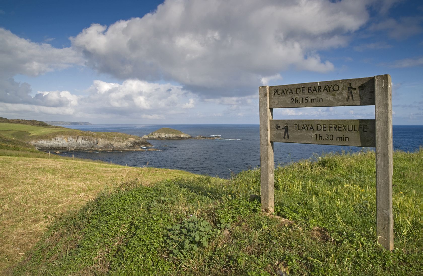 La ruta se inicia a la altura del km 515 ,5 de la N- 634, en el cruce con la carretera comarcal NV- 7, tomando esta comarcal y a unos 400 metros encontraremos un camino de tierra a la derecha. Aquí comienza la ruta propiamente dicha . Este camino nos llevara a través de un paisaje incomparable, hacia la ribera del Río Barayo que nos acompañara, guiándonos hasta su desembocadura, donde se encuentra la Playa de Barayo, uno de los espacios naturales más valiosos de la marina occidental (reserva natural parcial). Desde aquí iremos bordeando la costa admirando sus acantilados y calas, para arribar en el Km. 7.8, a nuestro "Pueblo Ejemplar "Puerto de Vega. Esta villa merece una visita detenida, pues a su indudable belleza se le añade una gran riqueza cultural e histórica. Aquí encontraremos la casa, donde falleció Jovellanos, la primera Aduana de Asturias, el magnifico retablo barroco de la iglesia de santa marina, que unido a sus callejuelas típicas, paseos, plazas, el puerto y sobre todo sus gentes, harán de esta vista un día imborrable.